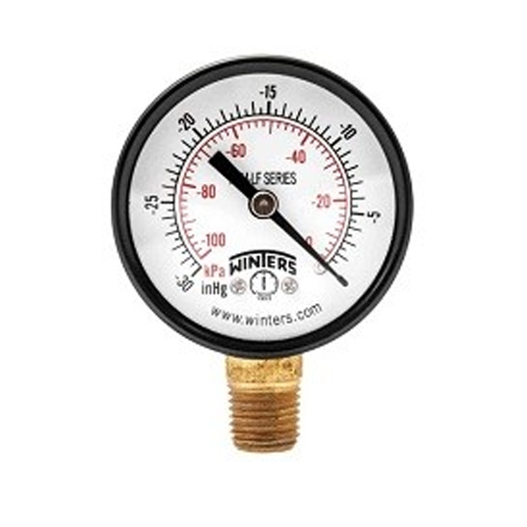 Caratula en acero pintado de color negro. Elementos internos y conexión en laton. Mecanismo seco (No apto para ser rellenado con glicerina). Dial desde 2.1/2″ (63mm) hasta 4″ (100mm). Escala en inHg/bar. Exactitud ± 3%. Aplicacion: Medición de presión inferior a la atmosferica de aire, aceite, agua, hidráulica, etc.